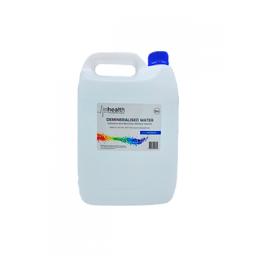 inhealth™ Demineralised Water is specifically formulated for use with autoclaves and bench top sterilisers. Through a process of reverse osmosis, all harmful salts, minerals and impurities are removed. inhealth™ Demineralised water is high purity water-reducing scaling effect on surgical instruments and autoclave chambers. High-quality demineralised water is very important for decontaminating instruments in medical or dental practice.